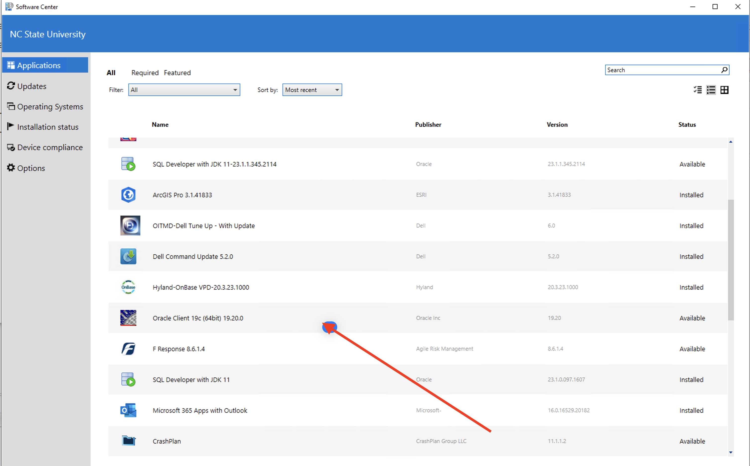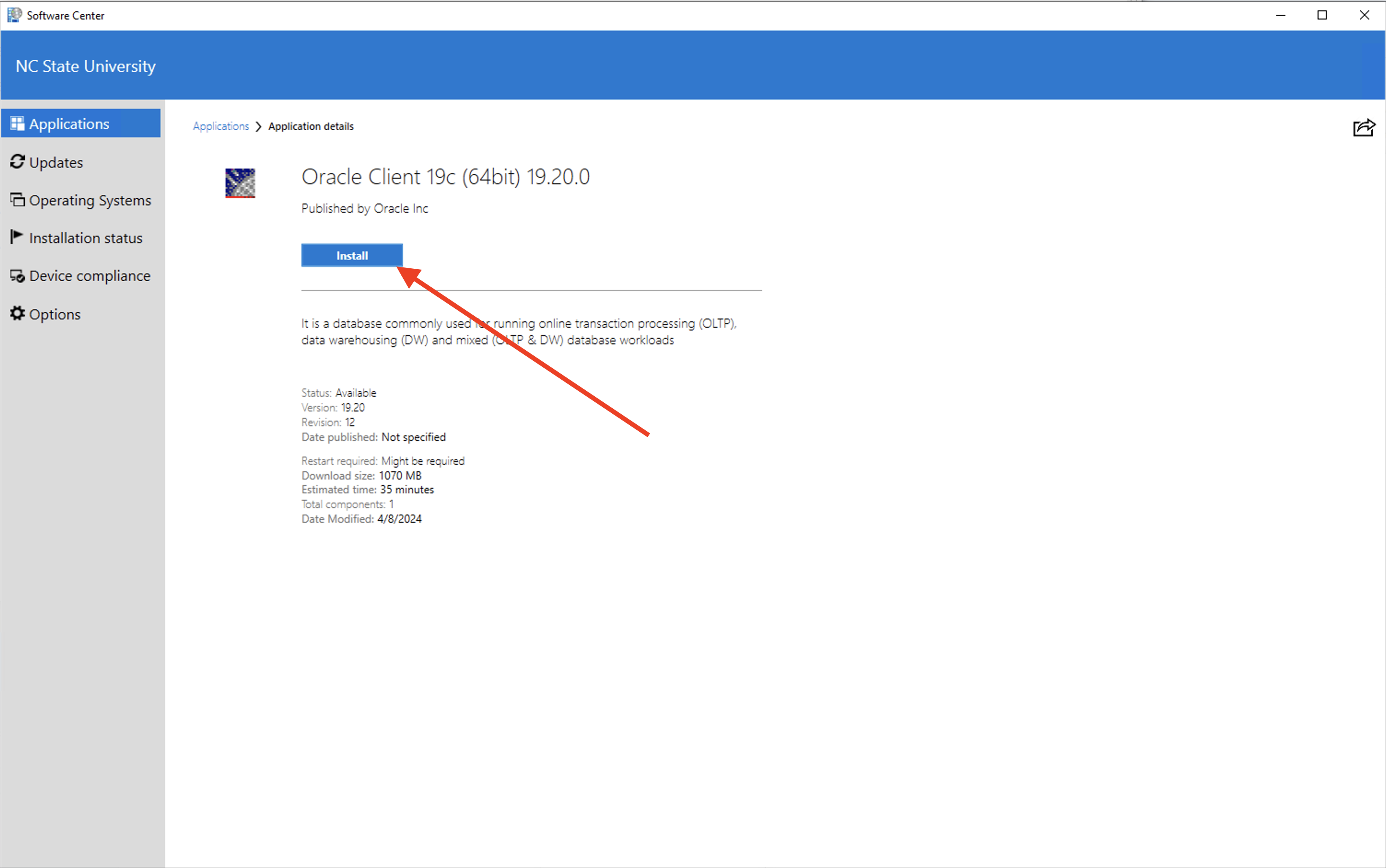 This document is intended to guide end users supported by the OIT_DESKTOP_SUPPORT group on the process of installing the Oracle 19c 64bit client through self-service tools.